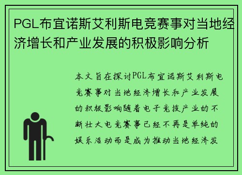 PGL布宜诺斯艾利斯电竞赛事对当地经济增长和产业发展的积极影响分析